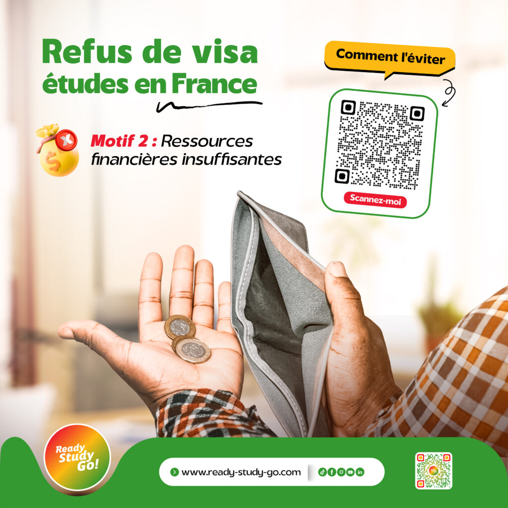L’insuffisance de ressources financières est l’un des motifs les plus invoqués par les autorités consulaires pour justifier le refus de visa étudiant. Elle est le motif 2 du refus de visa. Sur le justificatif du refus de visa, ce motif est libellé comme suit : « Vous n’avez pas fourni la preuve que vous disposez de ressources suffisantes pour couvrir les frais de toute nature, durant le séjour en France ». Les ressources financières sont donc un élément fondamental qui permet aux étudiants de concrétiser leurs projets d’études à l’étranger.